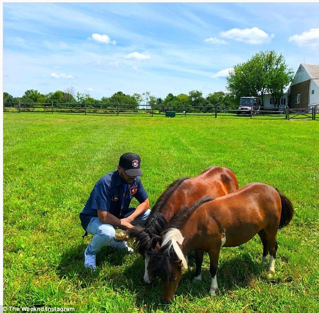 Në foton e publikuar, Bella shihej duke përkëdhelur një kalë, e veshur me një kapele bejsbolli, bluzë të bardhë me një pantallona të shkurtra. Ajo publikoi gjithashtu disa foto të The Weekend i buzëqeshur, i cili pozonte me kafshët e saj.